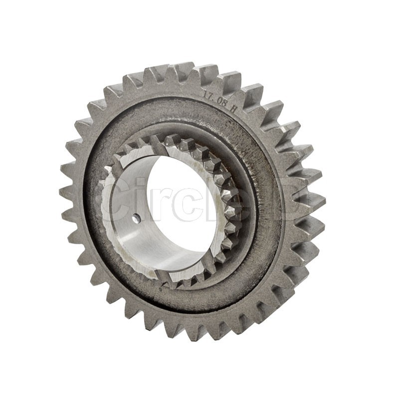 33 teeth, 106.3mm OD gear. 28 teeth, 57.6mm OD mesh. 43mm ID. 30mm overall width.