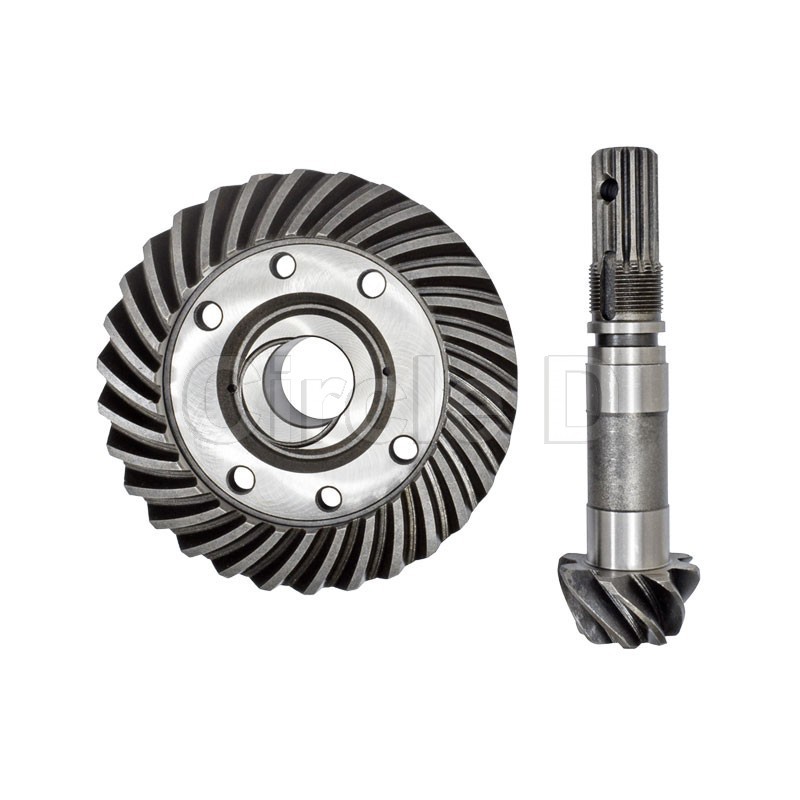 Crown - 30 teeth, 150mm OD. 4 x 84mm mounting bolt PCD (measured diagonally). 45mm OD bearing seat. 32mm ID bearing seat.