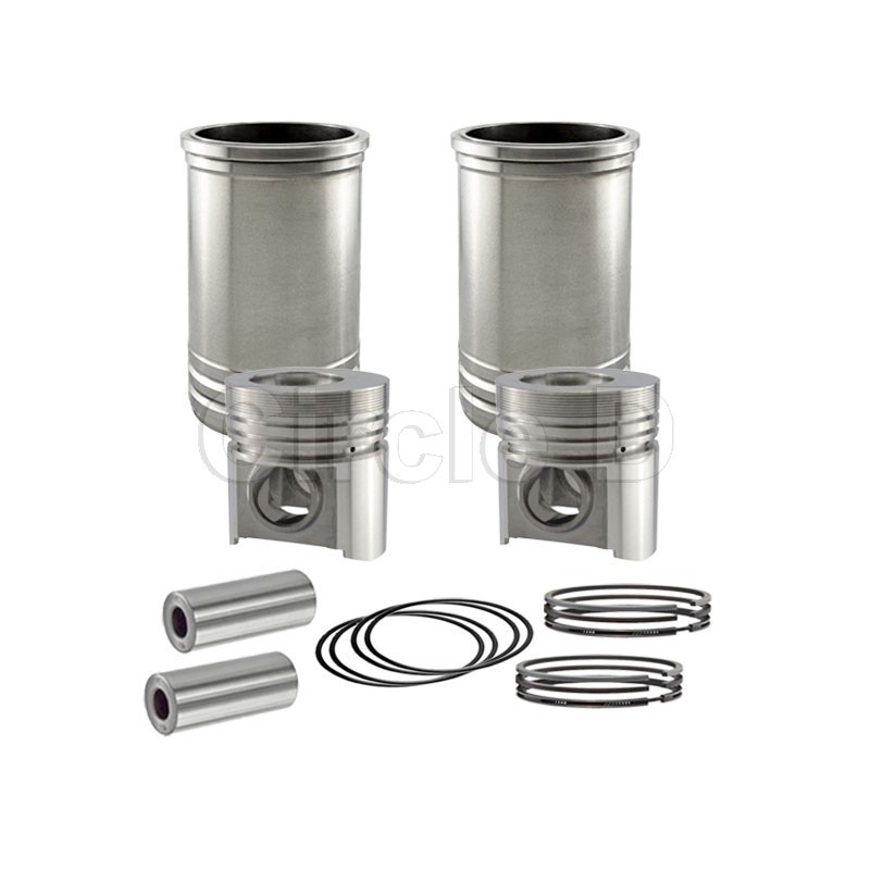 Kit includes: Cylinder Liners 0.00, 2 pieces. Pistons 0.00, 2 pieces. Piston Rings 0.00, 2 sets and Piston Pins, 2 pieces.