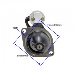 12 volt, 3.8kW. 11 teeth. 82mm OD flange. 120mm bolt centres.