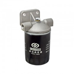 1 x M14x1.5 inlet - 1 x M14x1.5 outlet. Left to Right flow. CX0708B spin on filter. 45mm mounting bolt centres.